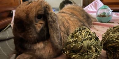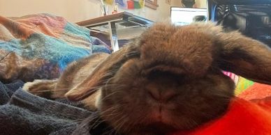 Maple was rescued in October 2022 from an animal cruelty case in Lassen County, along with more than 100 other animals. I saw a photo of her online through a FUR social media post in summer of 2023 and instantly fell in love (Maple did not feel the same way about me...she was completely indifferent). However, Maple was battling an upper respiratory infection at the time and wasn't available for adoption. I took her in as a sanctuary bunny, promising to foster her for the rest of her life.